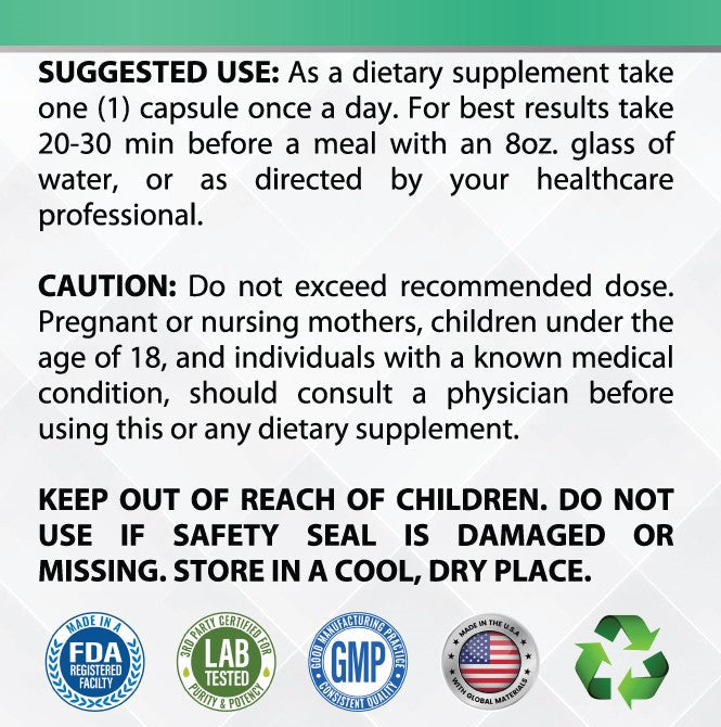 Suggested Use: Take 1 capsule daily with a meal for optimal absorption.