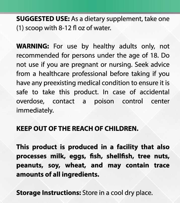 Suggested Use: Mix 1 scoop (5g) with water or your favourite beverage daily. For best results, use pre- or post-workout and stay well-hydrated.