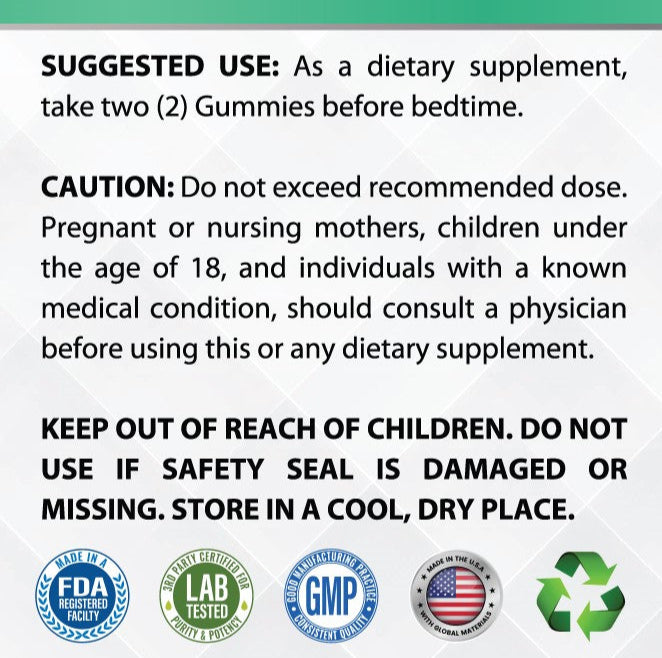 Take 2 gummies 30 minutes before bedtime. Relax. Breathe. Sleep deeply.