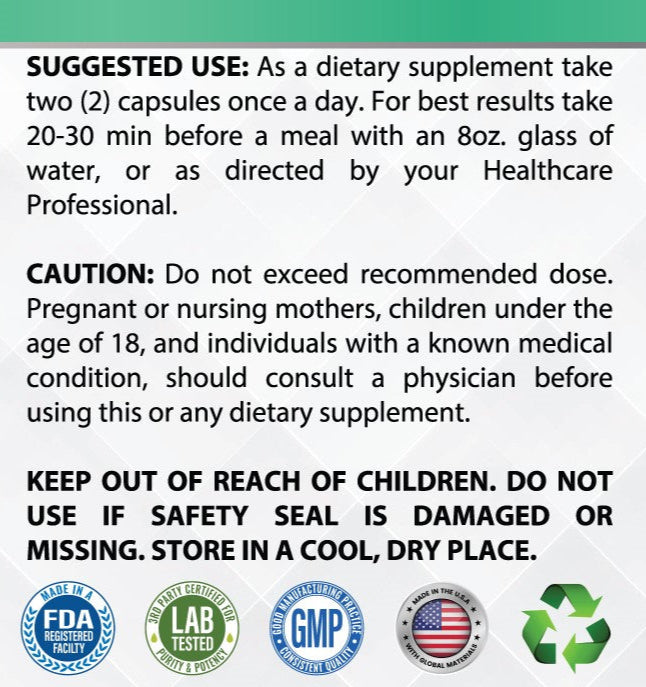 Suggested Use: Take 2 capsules daily with water, preferably before physical activity or as directed by your healthcare provider.